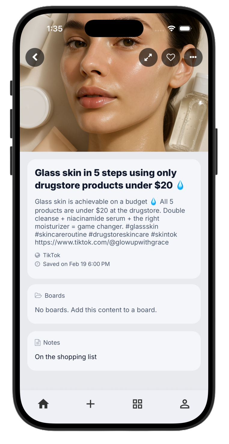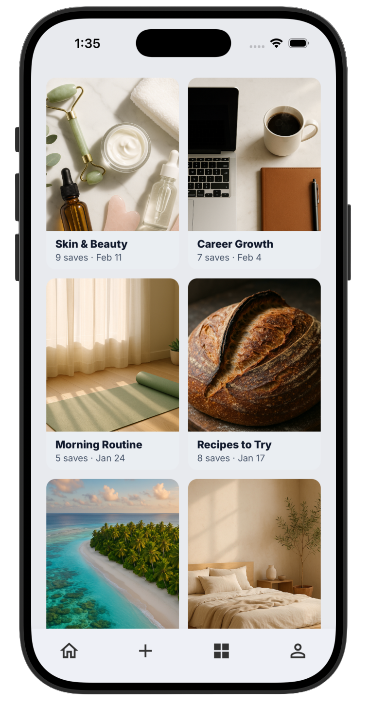 Organize saves seamlessly into beautiful boards that actually make sense to you.
